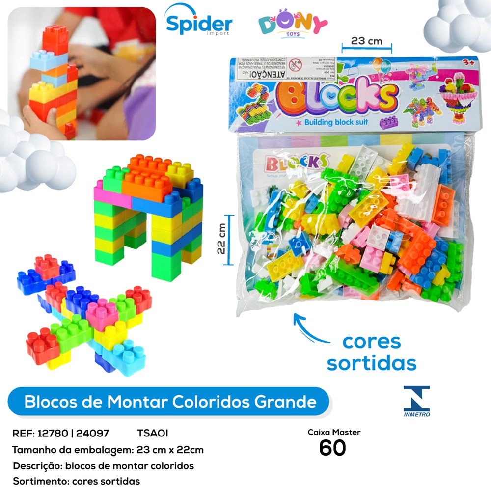 BLOCO DE MONTAR COLORIDO GRANDE 100 PCS