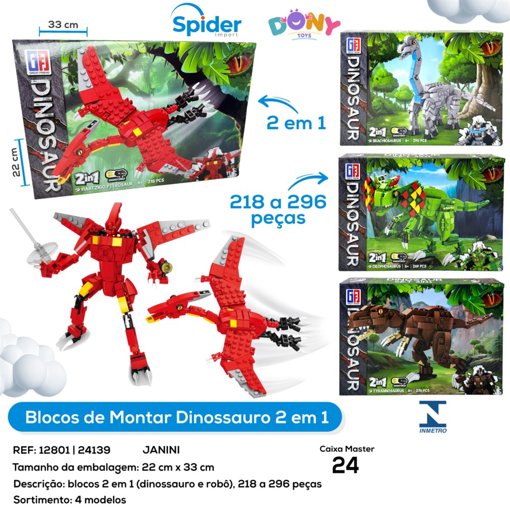 BLOCO DE MONTAR DINOSSAURO 2 EM 1