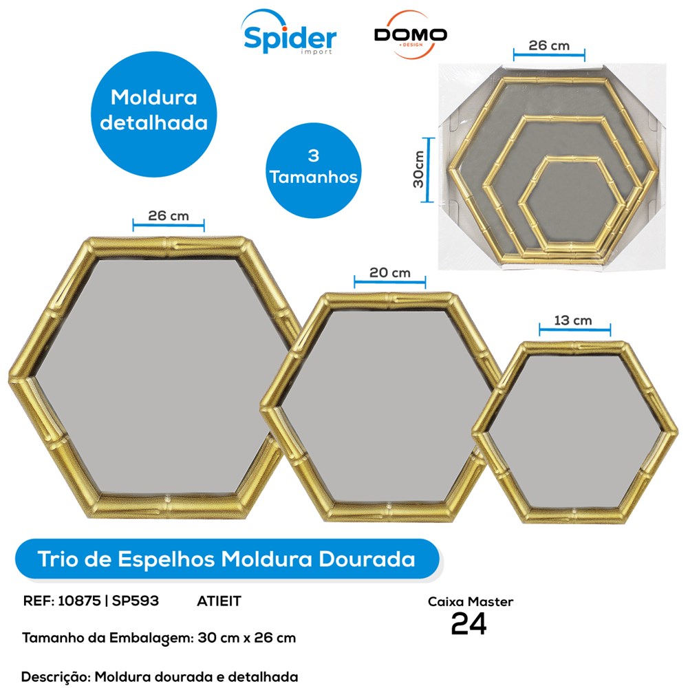 ESPELHO TRIO MOLDURA DOURADA