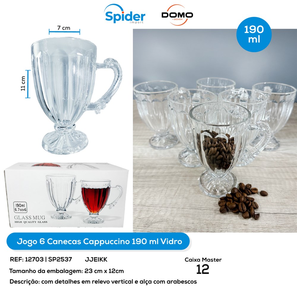 JOGO 6 CANECAS CAPPUCINO 190ML