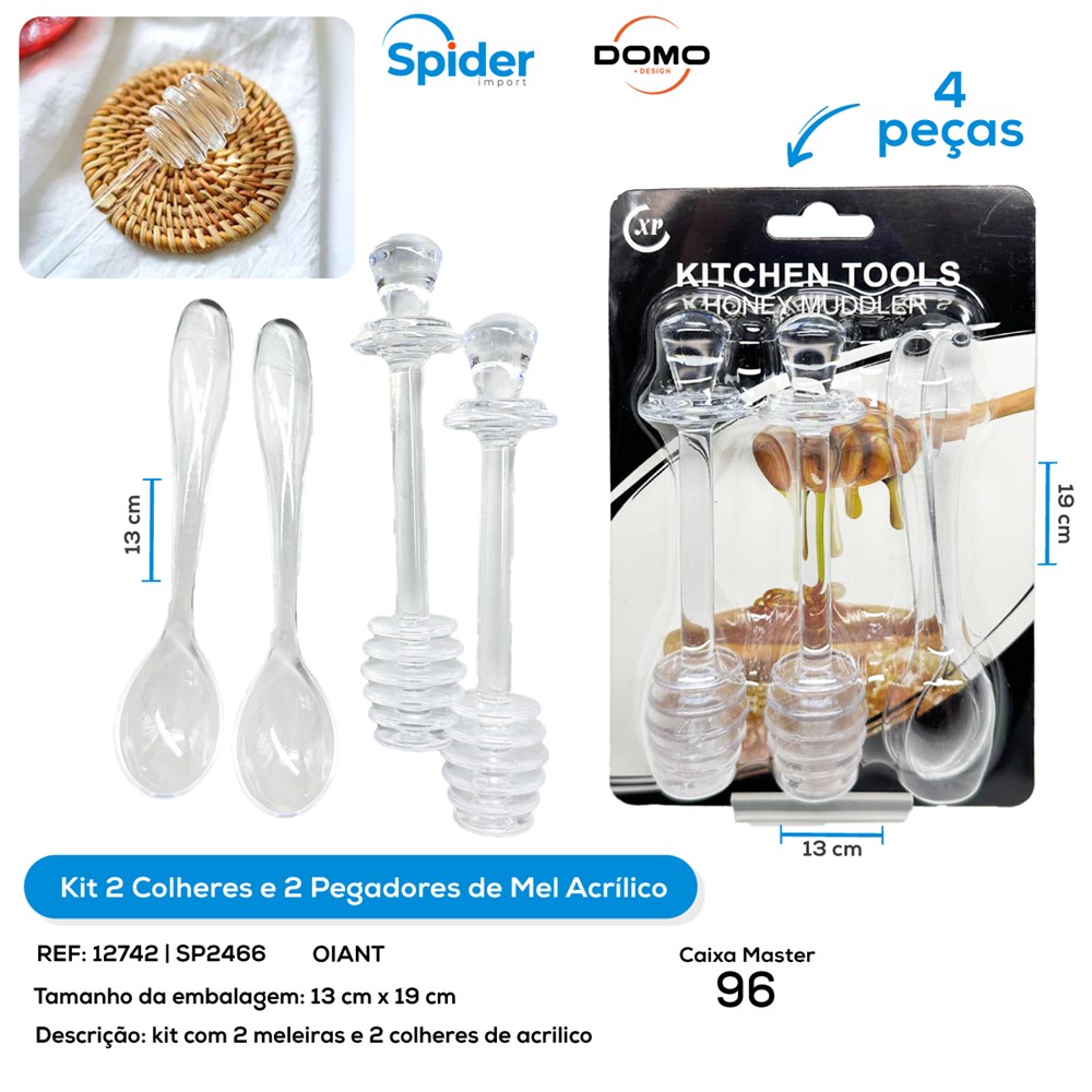 KIT 2 COLHERES E 2 PEGADORES DE MEL ACRILICO