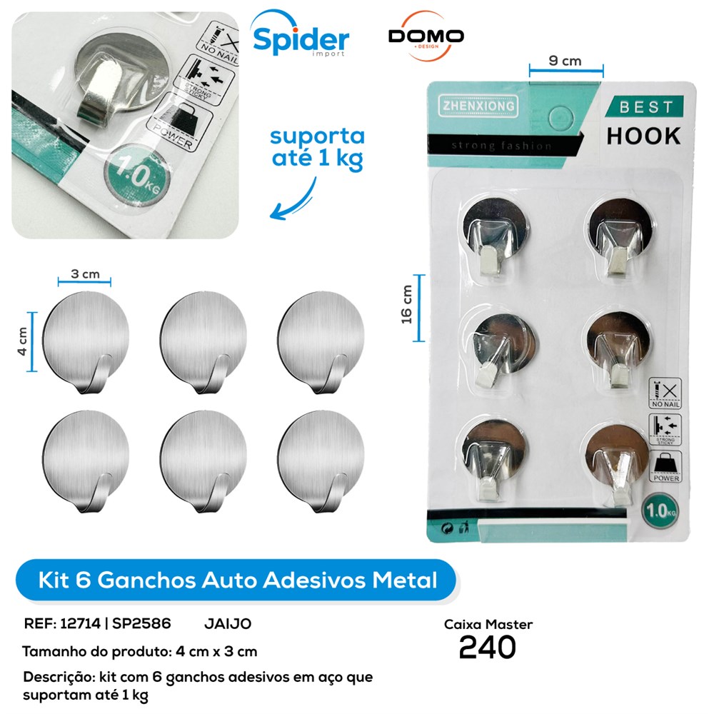 KIT 6 GANCHOS AUTO ADESIVO METAL (1KG)
